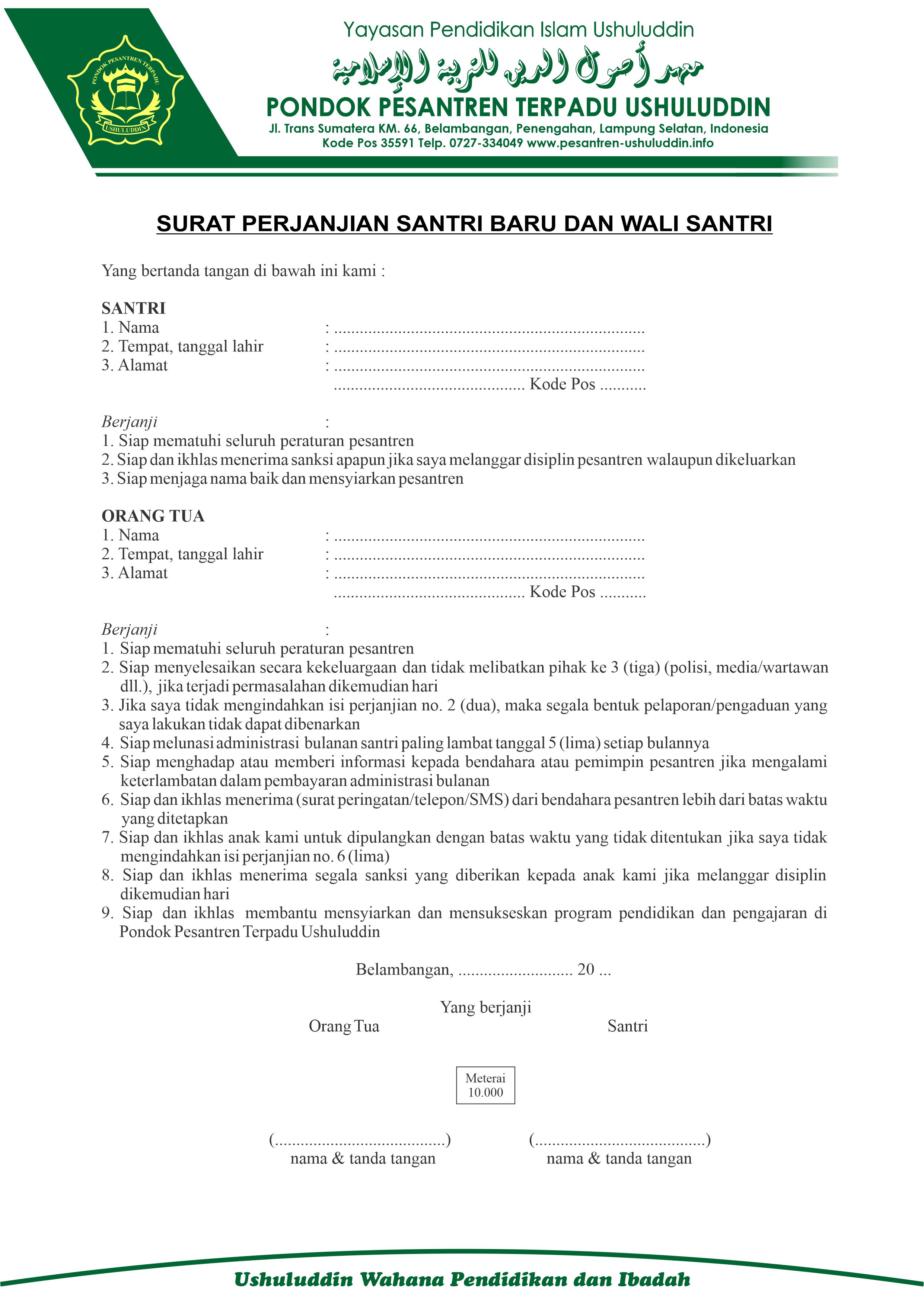 Pakta Integritas MTs Terpadu Ushuluddin